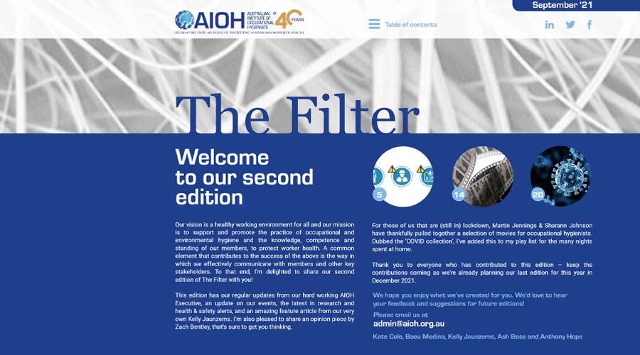 Welcome to our new and improved digital newsletter – The Filter Magazine. Using an online e-magazine platform, reading the latest AIOH news on a mobile device, desktop or laptop has never been easier.