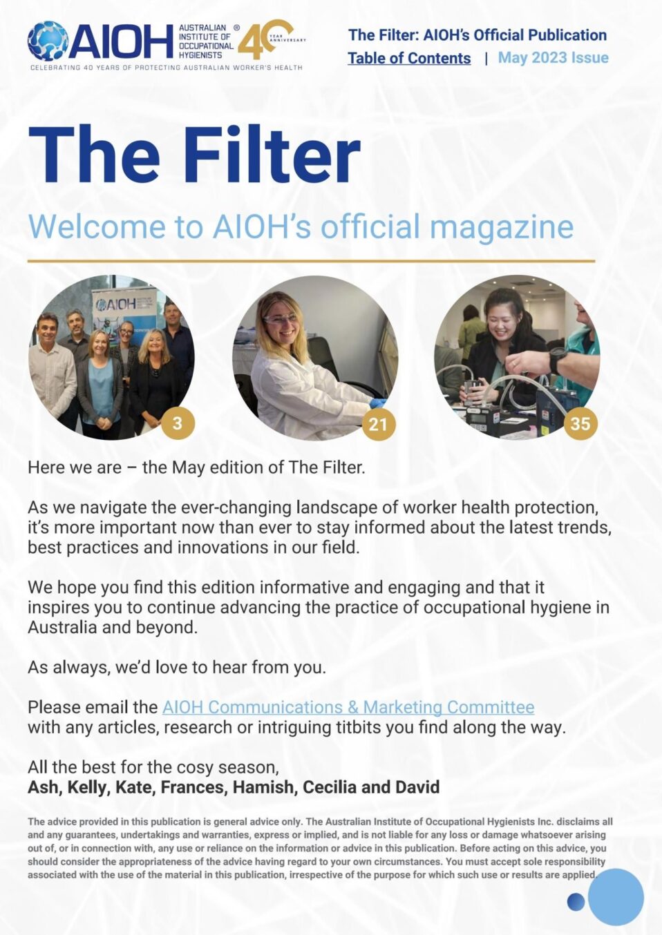 The first edition of The Filter for 2023 With a new look and feel, our latest edition features our #AIOH2022 Conference, a presidential handover and welcome to our 2023 Council, celebration of new initiatives like the Emerging Hygienist Group and a brand new award!