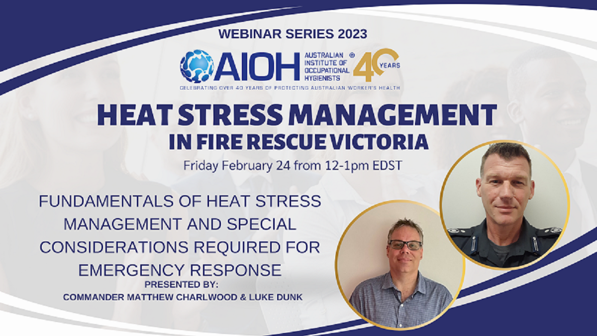Luke Dunk has been a member of the AIOH for over 15 years and currently works with FRV as Manager of Health Services. Prior to FRV Luke has worked in Specialist and Leadership Occupational Health and Hygiene roles within Mining, Construction and Energy with companies such as BHP Olympic Dam, Fortescue Metals, Leighton Contractors and AGL.