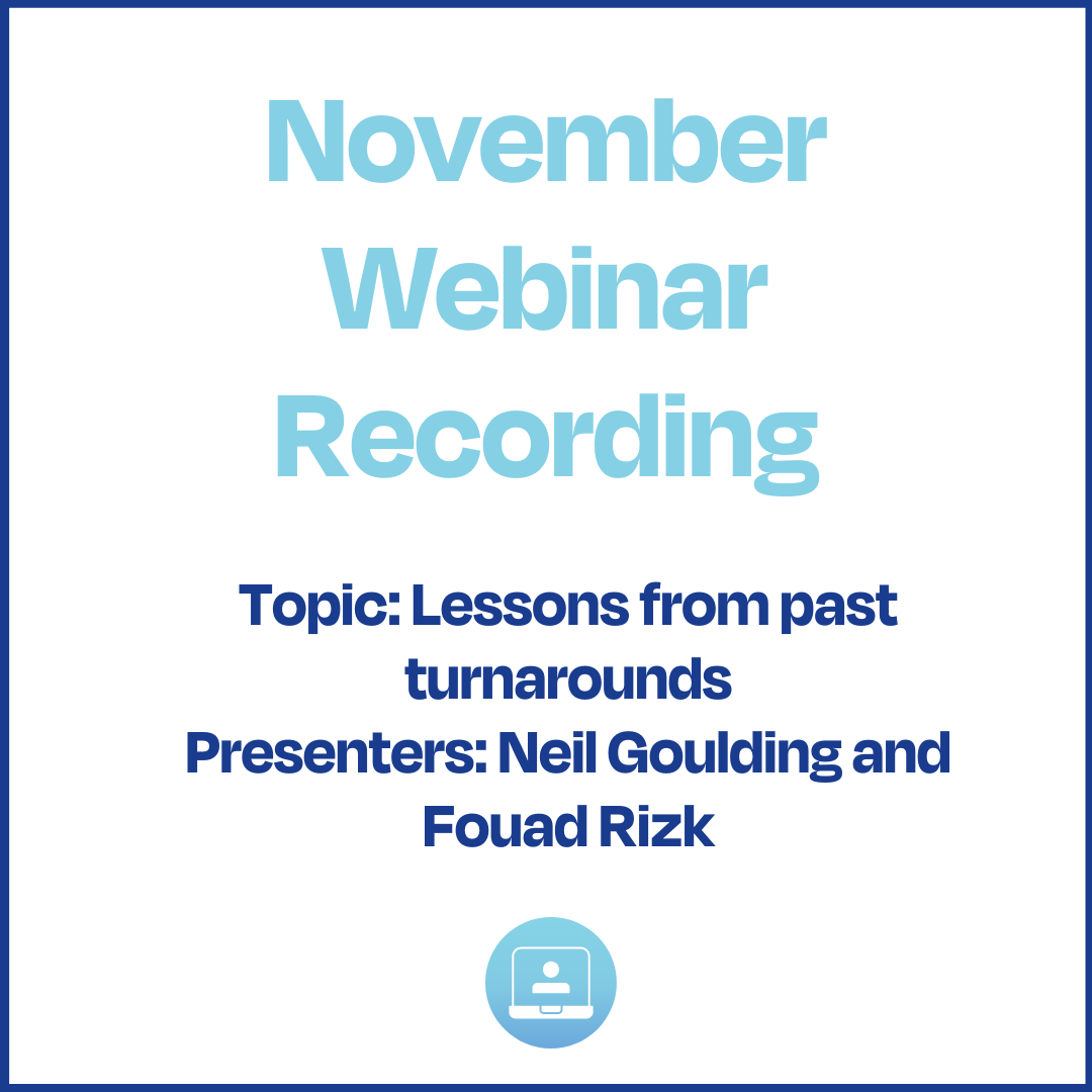 Topic: Lessons from past turnarounds Presenters: Neil Goulding and Fouad Rizk Date Held: November 2024