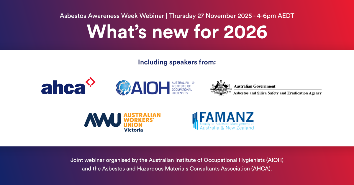 Joint webinar orgnaised by the AIOH and AHCA for Asbestos Awareness Week 2025.