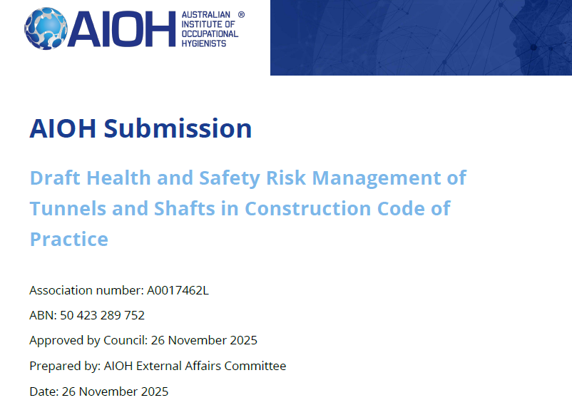 This Code provides a much-needed instrument for an industry where the health risks are both acute and increasing. We thank the NSW Government for undertaking this critical work and for inviting the AIOH to contribute. In preparing this submission, we have consulted with experienced occupational hygienists currently working on tunnelling projects across NSW, and the feedback presented reflects their consolidated expertise and insights.