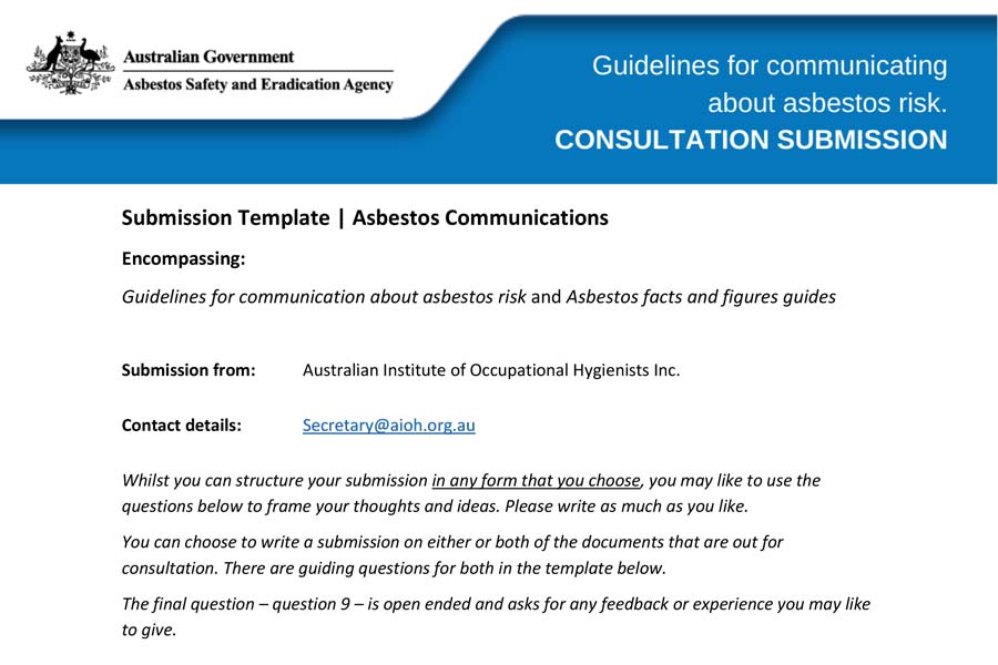This submission provides comments on the guidelines identify the key challenges involved in communicating the risks around asbestos and how to adequately address those challenges.