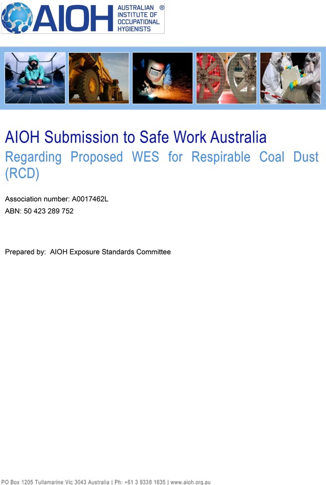 AIOH Submission to Safe Work Australia Regarding Proposed WES for Respirable Coal Dust (RCD)