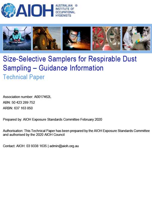 This Technical Paper was prepared to provide guidance on choosing sampling equipment for respirable dust sampling. The need for this Paper became apparent due to questions raised by occupational hygienists regarding the validity of a number of size-selective cyclones in common use that may not meet the required respirable dust size-selective criteria required by various Standards.