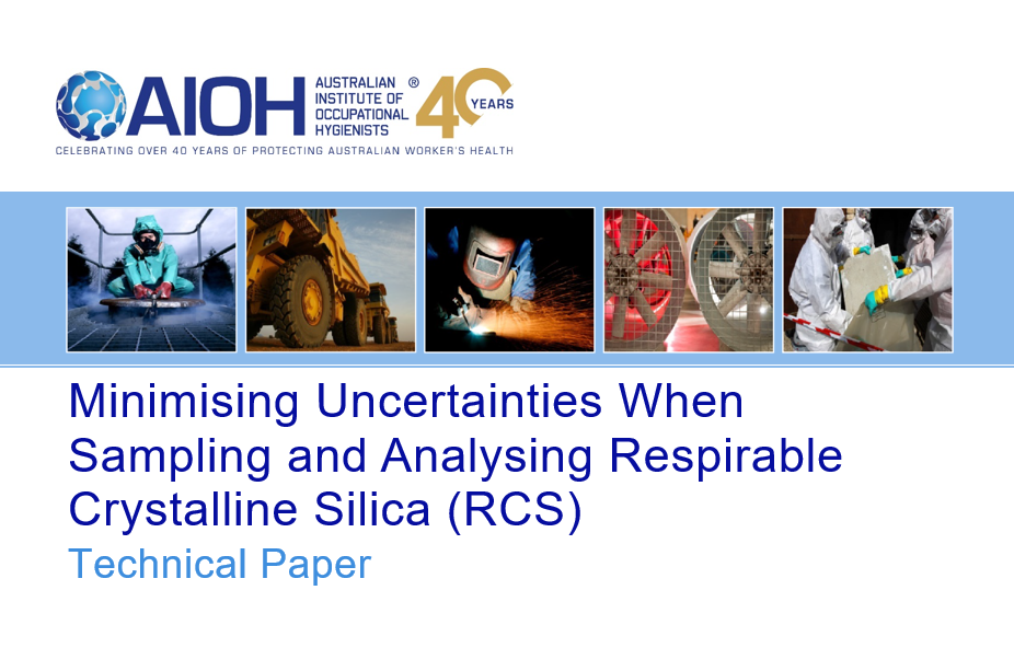 The AIOH Technical Paper – Minimising uncertainties when sampling and analysing RCS has been prepared to provide guidance to occupational hygienists when planning, conducting, and reporting results of RCS measurements. It is envisaged the Paper will also assist other interested parties such as regulators, and organisations who commission workplace RCS measurements
